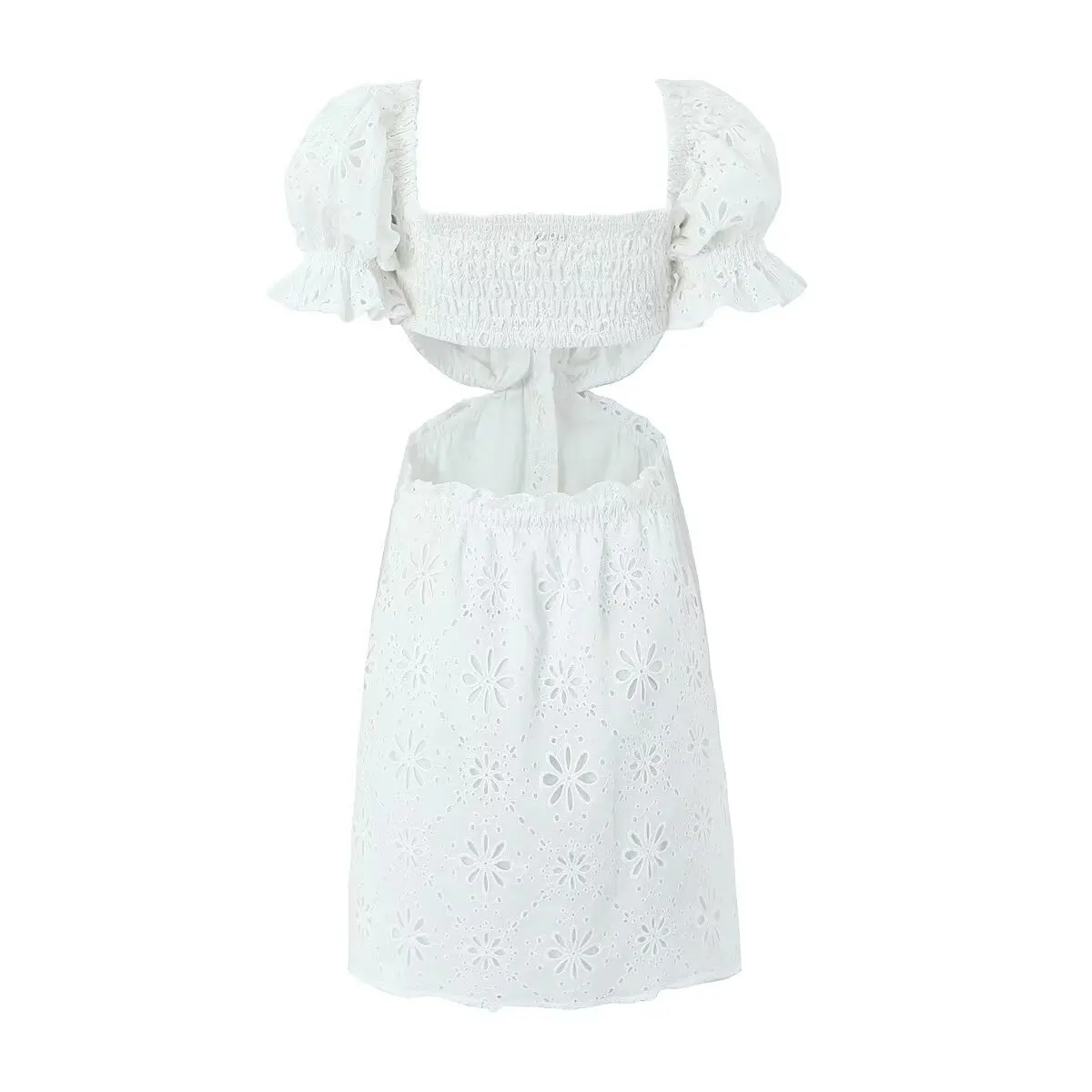 ราคาถูกและส่วนลด 2024ชุดกระโปรงผ่าเอวเปลือยหลังแขนสั้นสำหรับผู้หญิงเสื้อคลุมติดกระดุมยืดได้งานปักสีขาวสุดเซ็กซี่สำหรับผู้หญิง ขายส่ง ซื้อโดยตรงจาก ZJOAN SHOW Official Store